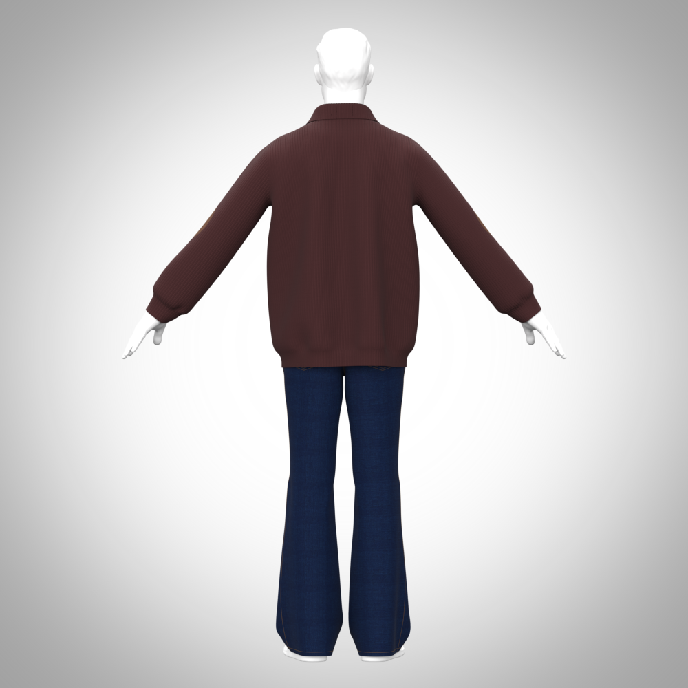 This men’s sweater and flare pant set enhances digital lookbooks, avatar styling, 3D fashion shows, virtual fitting rooms, advertising campaigns, and immersive AR experiences. The garment simulates natural drape, fabric stretch, and wrinkle patterns, ensuring visually compelling results. Whether used for portfolio development or professional production, it delivers polished and dependable performance across platforms.