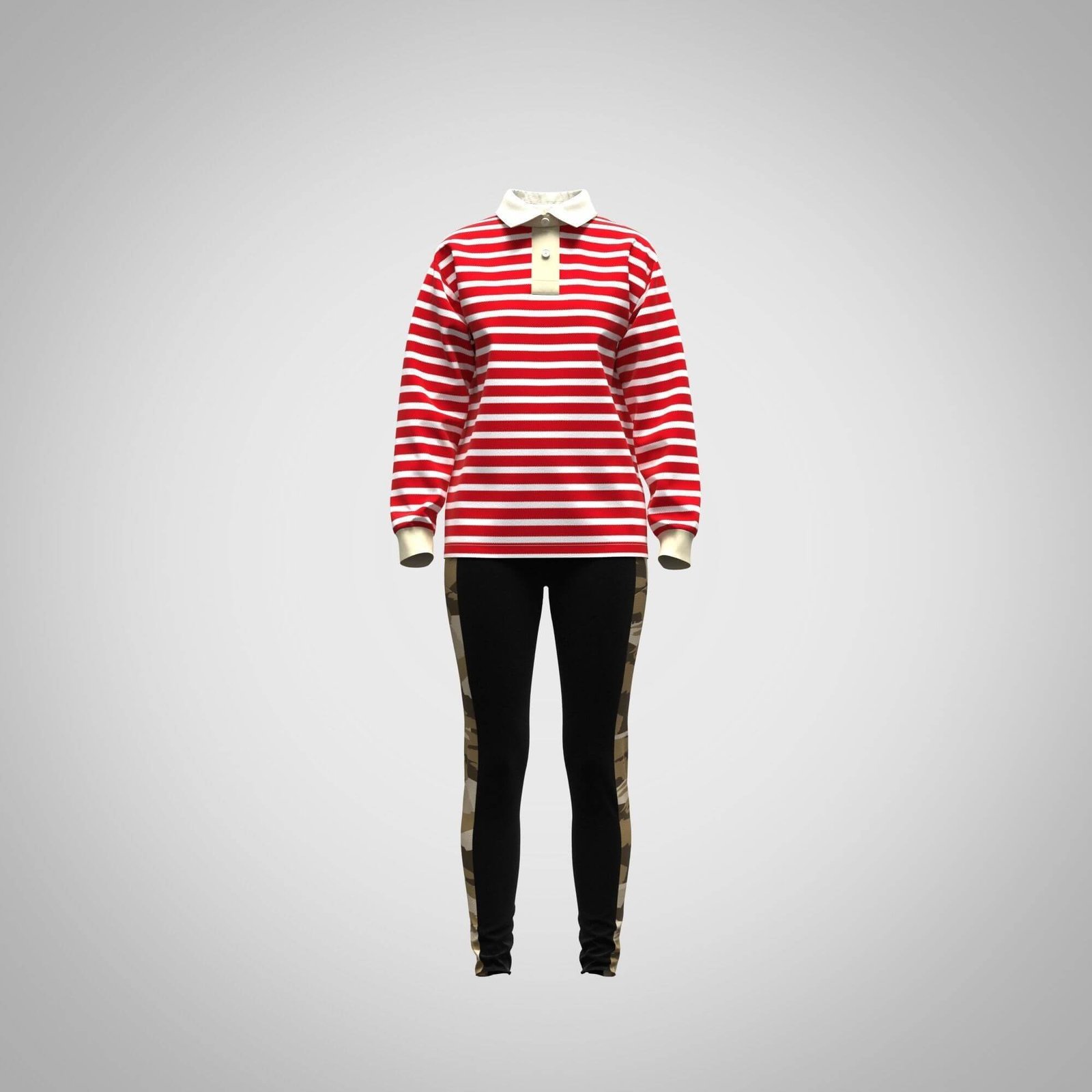 3d Model Womens Rugby Polo Digital Fashion CLO 3D & Marvelous Designer Compatible