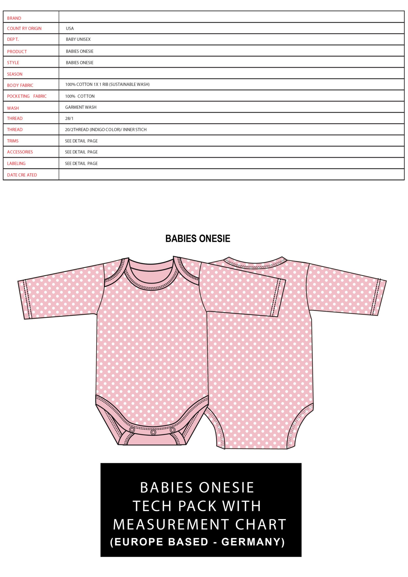 Customizable: Fully editable AI files allow you to adapt the tech pack for different onesie styles, sizes, or fabric types.
