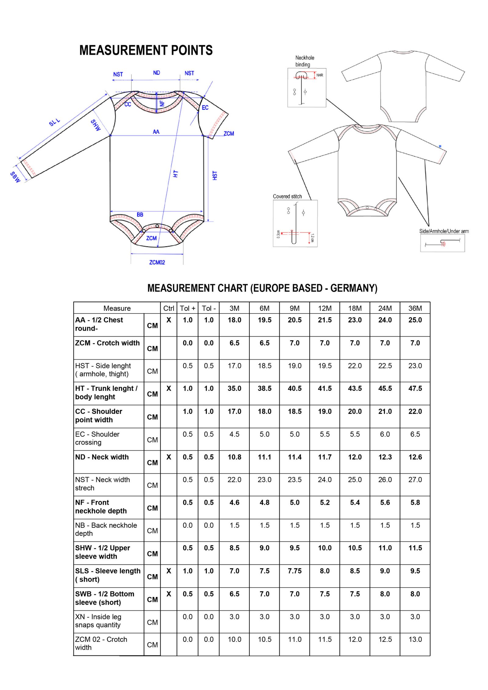 Comprehensive Measurement Charts: Pre-filled charts for standard baby sizes, which can be easily modified for custom sizing.