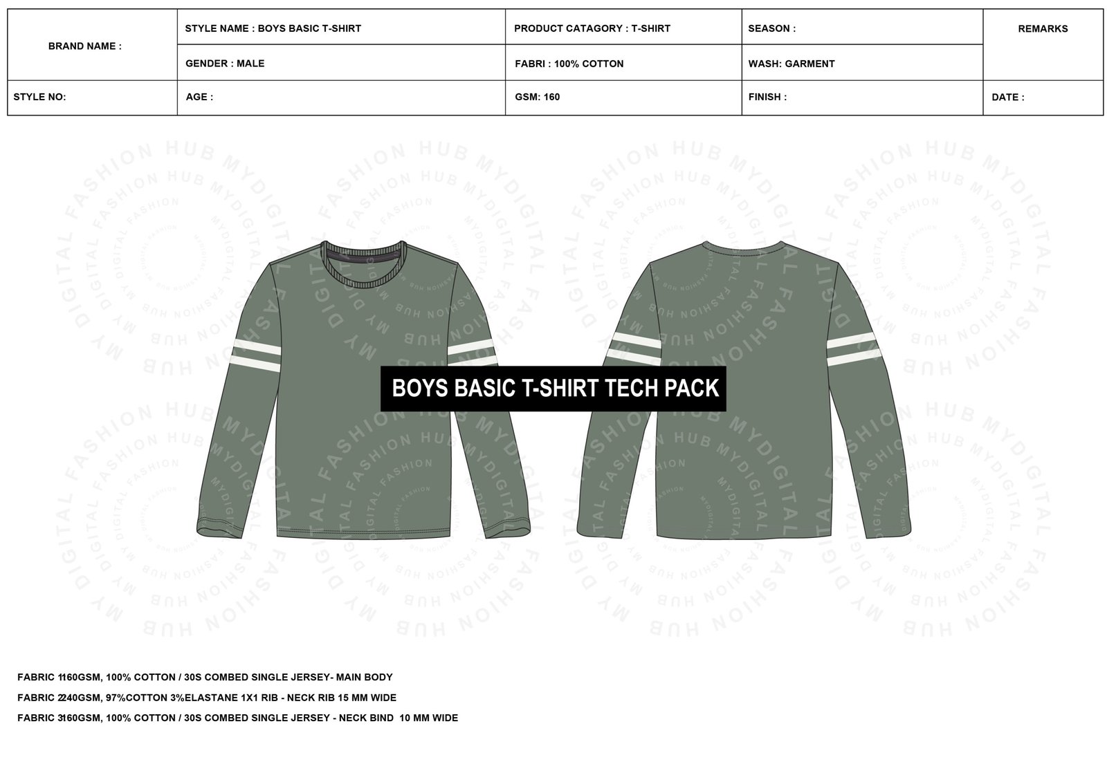 What’s Included in this Tech Pack inside Boys Basic T-Shirt Tech Pack :