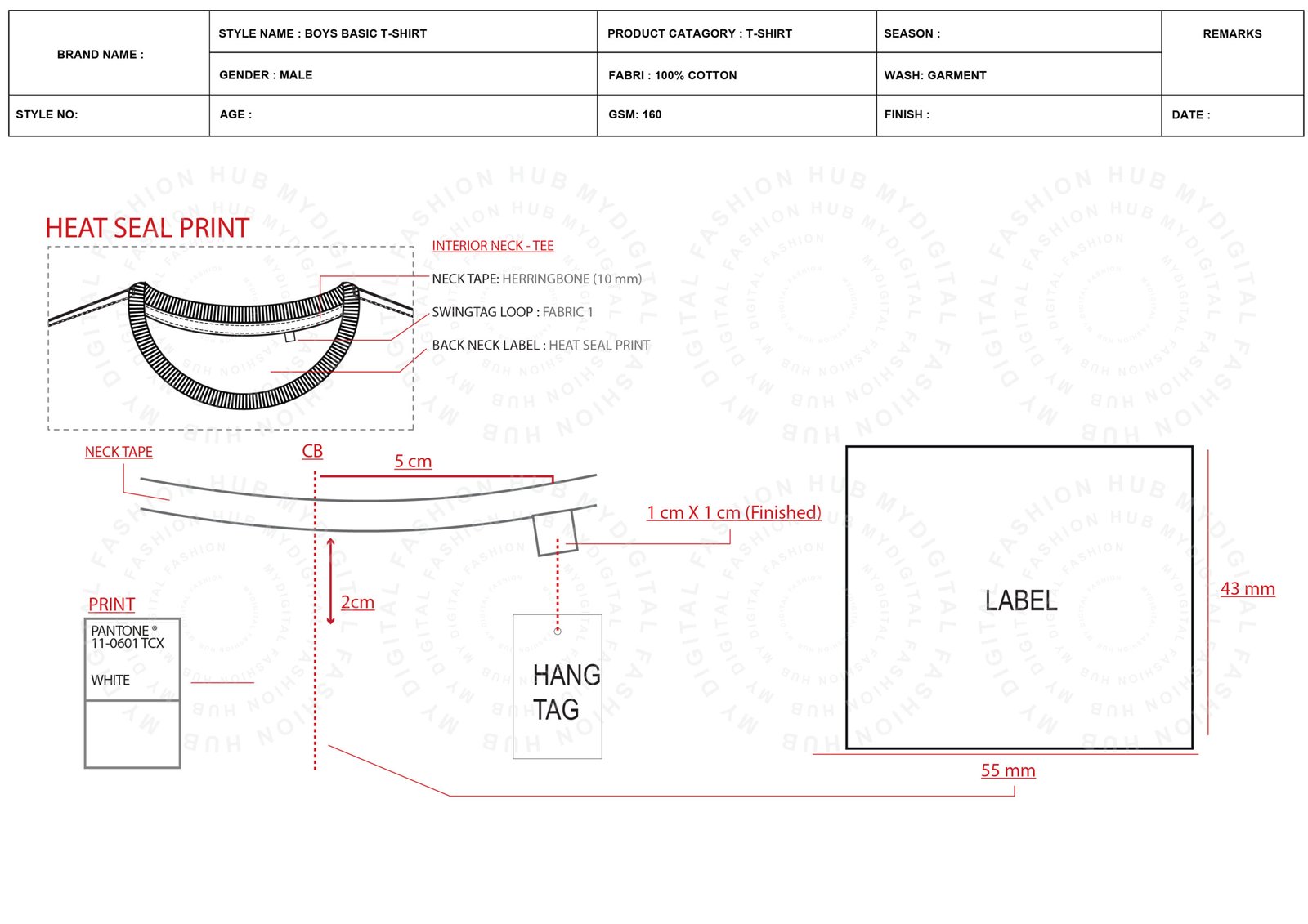 Colorway & Artwork Page: A dedicated page to specify color standards (e.g., Pantone TCX codes) and placement for any logos or graphics.