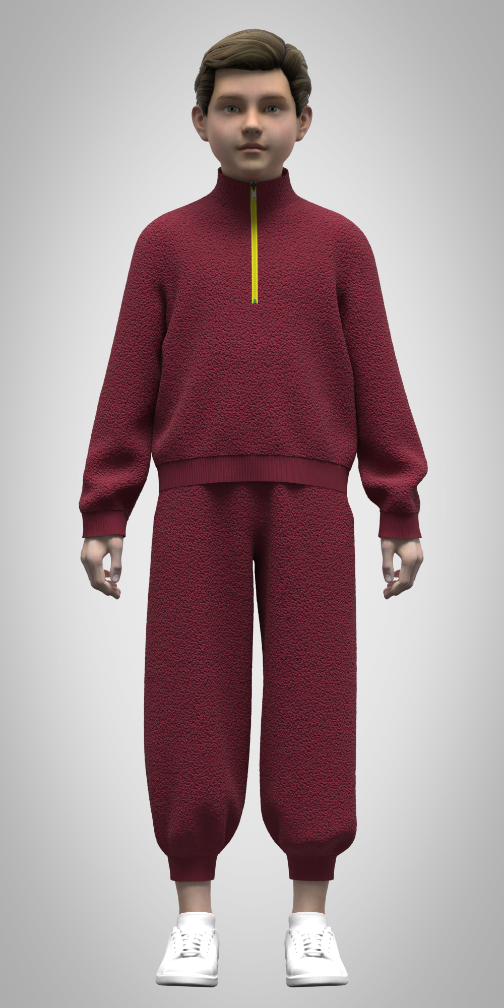 This kid boys sweat set 3D model elevates digital fashion showcases. Whether used in 3D lookbooks, virtual fitting rooms, AR/VR applications, game environments, or marketing visuals, it delivers photorealistic results with realistic fabric tension, smooth folds, and lifelike draping. Designers have full control over digital garment presentation, ensuring visually compelling outputs suitable for portfolio, marketing, and interactive projects.