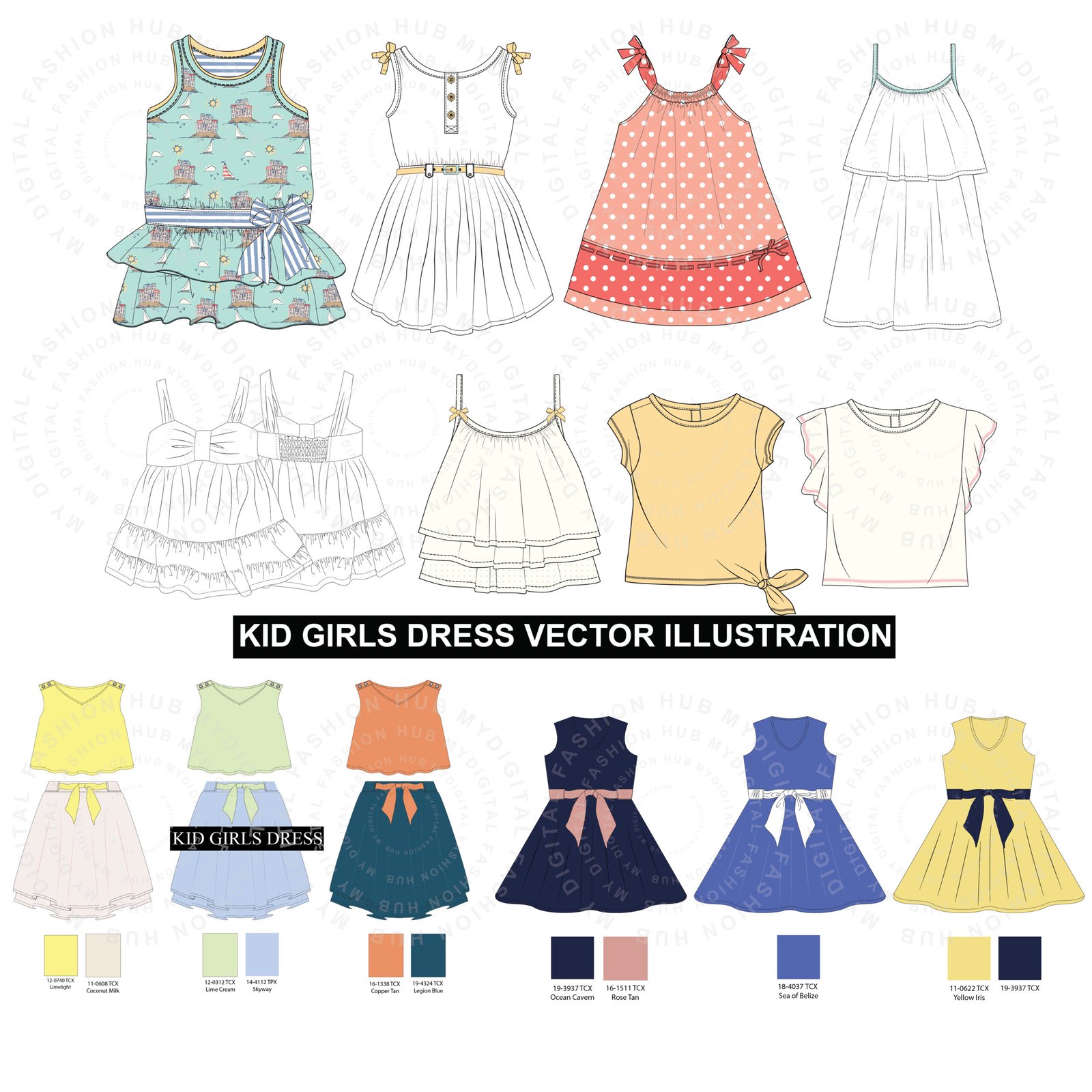 Kid Girls Dress Vector Illustration | Fashion Flat Sketch (AI)