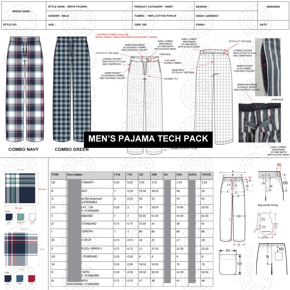 Men’s Pajama Tech Pack Editable Sleepwear Specification Template AI