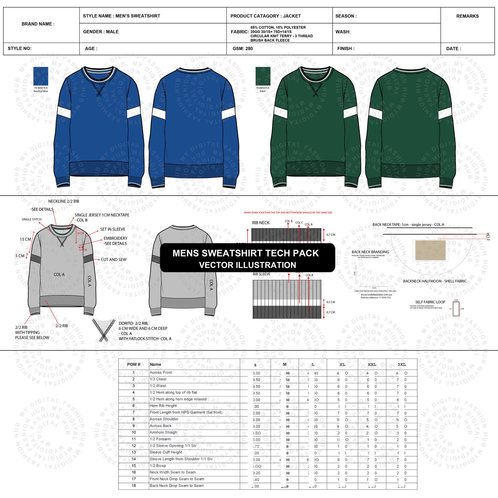 Mens Sweatshirt Tech Pack Template – Editable & Production-Ready