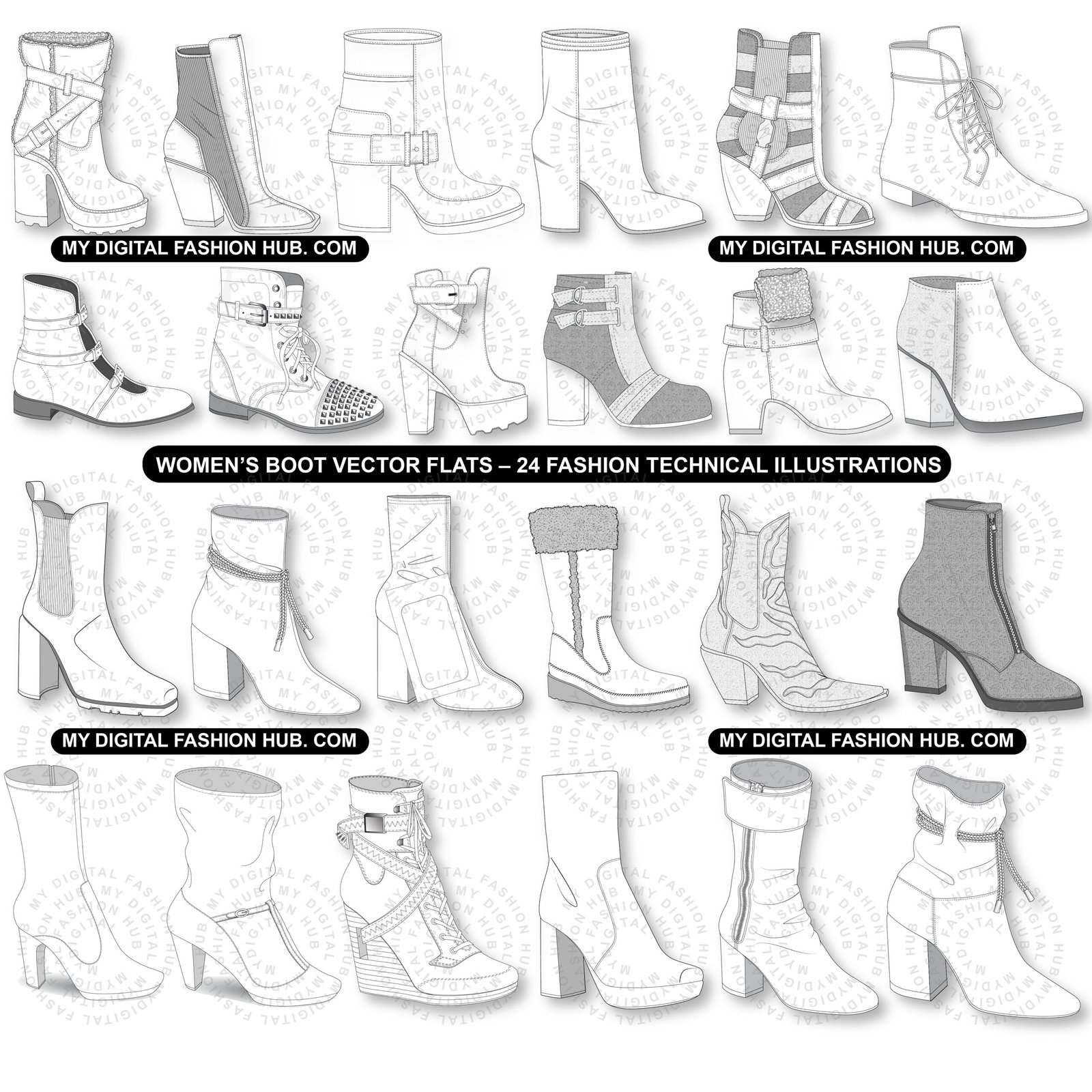 Womens Boot Vector Flats 24 Fashion Technical Illustrations – Stop Guessing, Start designing and Producing