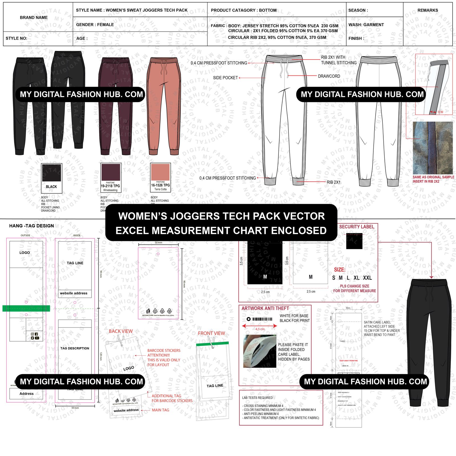 Womens trouser/jogger tech pack files online are mostly decorative nonsense. They look impressive on screen but collapse the moment production begins. Factories don’t interpret creativity. They execute instructions. When those instructions are unclear, you get wrong samples, wasted fabric, and delayed timelines. This womens trouser/jogger tech pack is built to solve that exact problem.