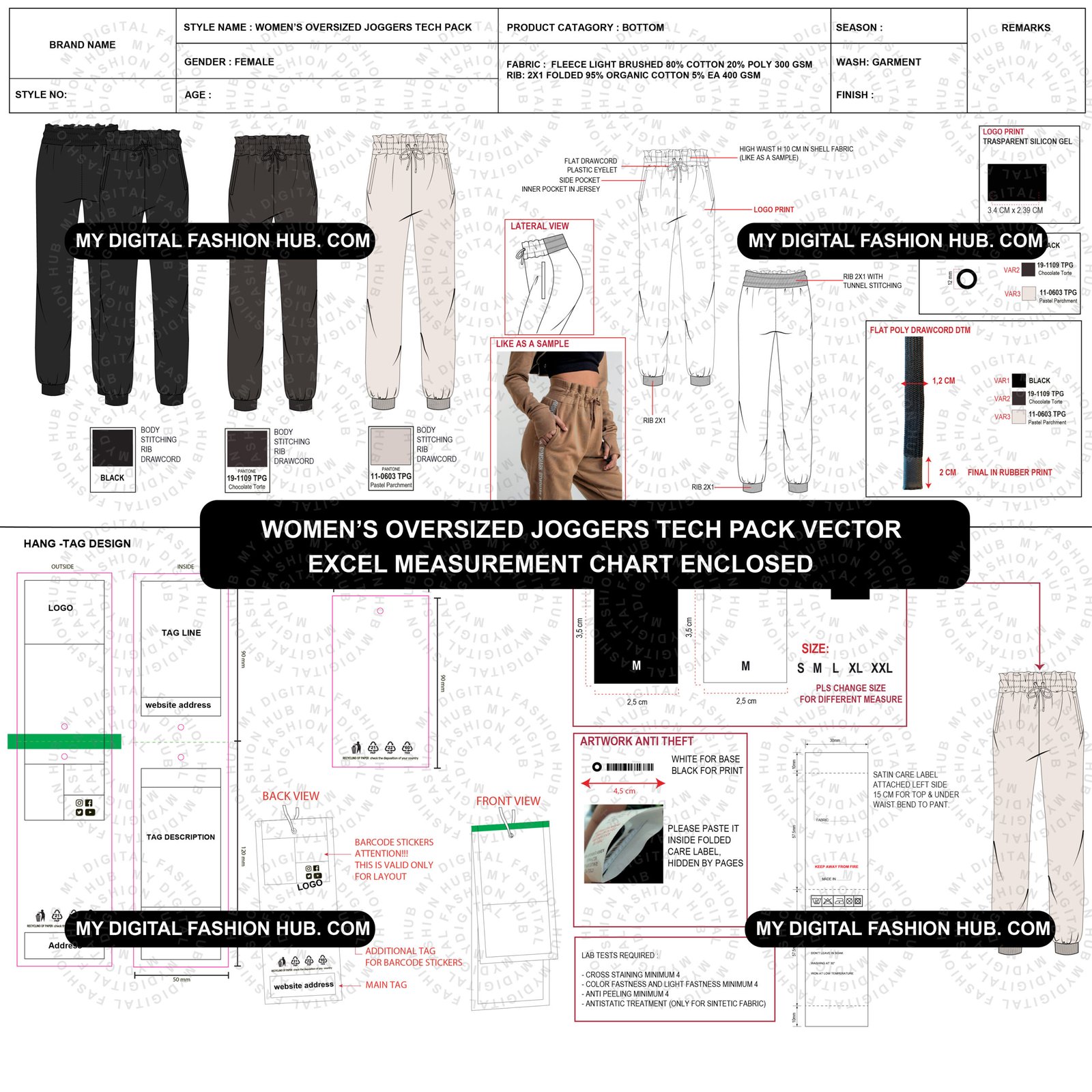 Womens oversized trouser/ jogger tech pack files online are mostly decorative nonsense. They look impressive on screen but collapse the moment production begins. Factories don’t interpret creativity. They execute instructions. When those instructions are unclear, you get wrong samples, wasted fabric, and delayed timelines. This womens oversized jogger tech pack is built to solve that exact problem.